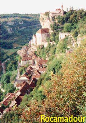 Rocamadour, S.W. France, a religious site and place of pilgrimage dating back hundreds of years. At the heart of the settlement, about half way up is a splendid church carved into the cliff face.